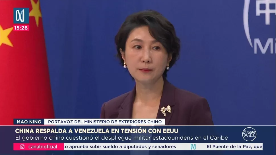 China expresó su respaldo al gobierno de Venezuela tras el reciente patrullaje de buques de guerra estadounidenses en el mar Caribe. Según la portavoz del gobierno chino, estas maniobras ponen en riesgo la paz regional y constituyen una violación a la soberanía de los países latinoamericanos.