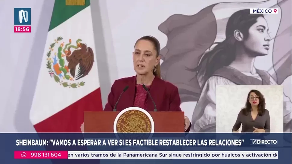 La presidenta de México, Claudia Sheinbaum, señaló que su país está dispuesto a evaluar la posibilidad de restablecer las relaciones diplomáticas con Perú tras la reciente elección de José María Balcázar como presidente interino.
