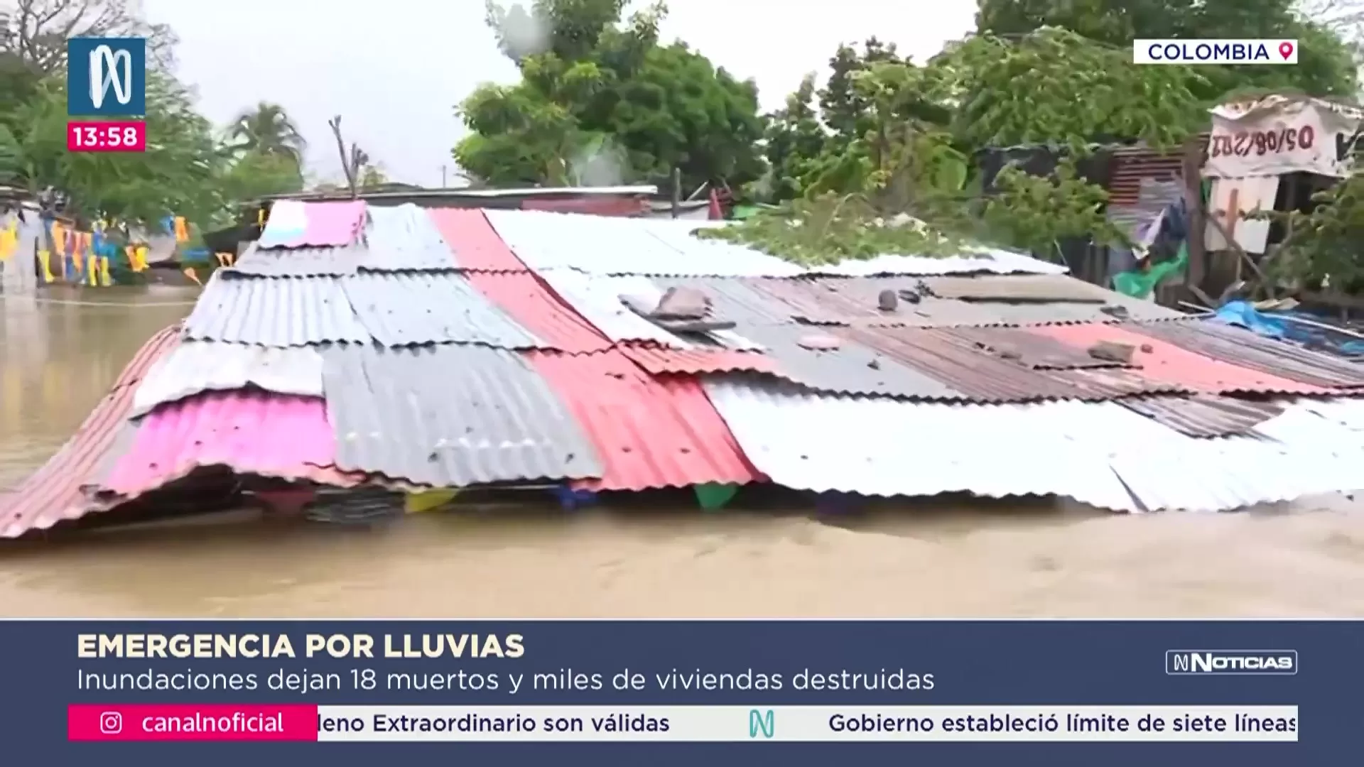 Colombia decretó estado de emergencia tras intensas lluvias que dejan al menos 18 muertos y más de 4 mil 300 viviendas destruidas. Cerca de 300 mil hectáreas permanecen inundadas y más de 69 mil familias resultaron afectadas en un centenar de municipios. El departamento de Córdoba es uno de los más golpeados por el desbordamiento del río Sinú. El Ideam reportó el ingreso de dos frentes fríos y alertas hidrológicas en rojo. El ministro de Hacienda estimó que se necesitarían 8 billones de pesos para la recuperación de las zonas afectadas.