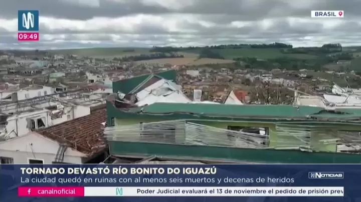 Un potente tornado devastó gran parte de la ciudad de Río Bonito do Iguaçu, en el estado de Paraná, Brasil, dejando al menos seis personas fallecidas y más de 400 heridas. El fenómeno natural, con vientos que alcanzaron los 250 kilómetros por hora, golpeó directamente el perímetro urbano de esta localidad de aproximadamente 14 mil habitantes.