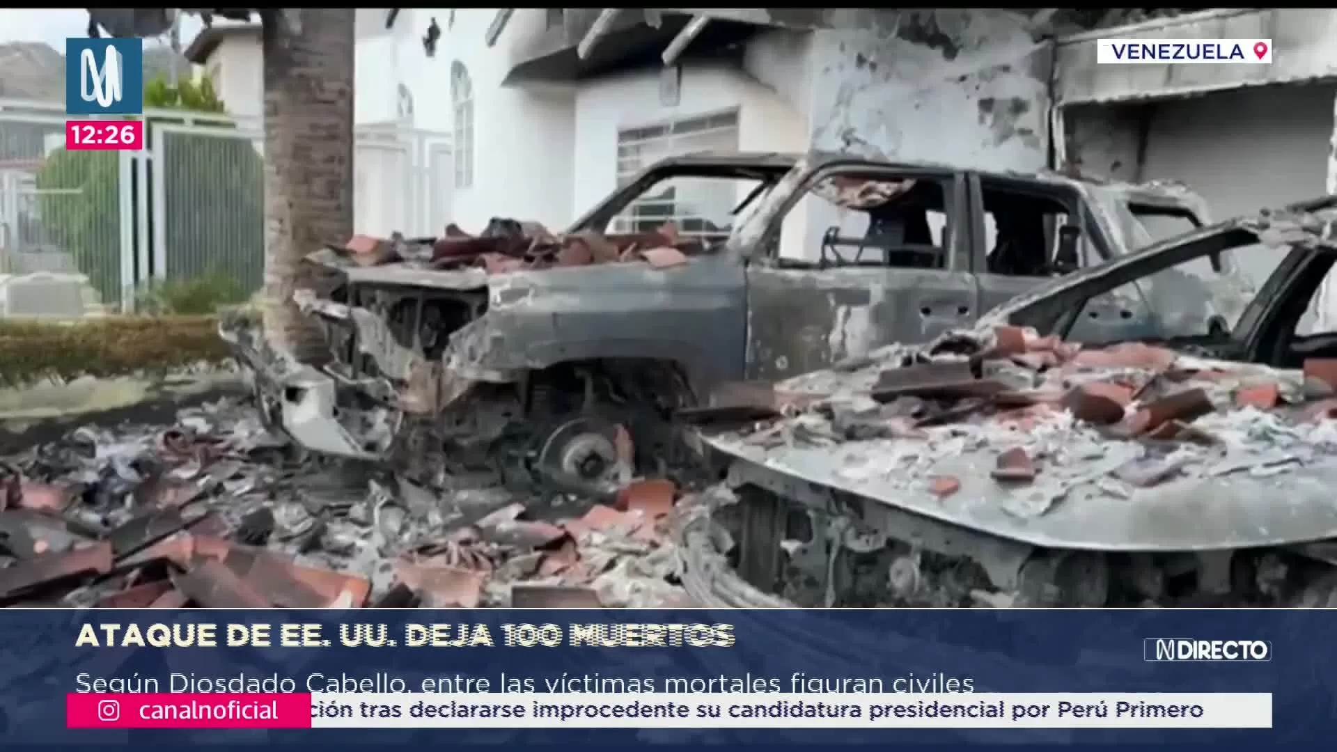 Cabello afirmó que Nicolás Maduro sufrió una lesión en la pierna y que Cilia Flores resultó con un golpe en la cabeza durante la operación militar. El funcionario responsabilizó a Estados Unidos por los daños y las víctimas, y destacó esos hechos durante su programa televisivo. Según su relato, la operación provocó daños en sedes oficiales y en distintas viviendas cercanas a la capital venezolana. Cabello dijo que decenas de muertes, tanto de civiles como de militares, están aún en proceso de contabilización.