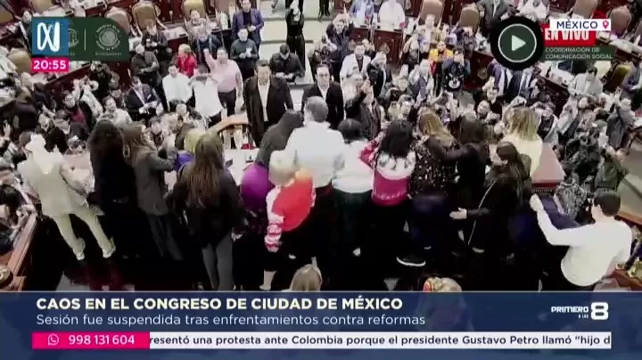 La sesión del Congreso de Ciudad de México fue suspendida luego de un enfrentamiento físico entre diputadas del PAN y Morena durante el debate sobre una reforma al órgano local de transparencia. El conflicto comenzó tras la ocupación de la tribuna por parte de legisladoras opositoras y derivó en empujones, jalones de pelo y gritos. La Mesa Directiva ordenó suspender la sesión ante la imposibilidad de continuar con el debate. Posteriormente, la mayoría oficialista decidió reanudar el proceso en una sede alterna. El incidente fue transmitido en vivo y generó diversas reacciones dentro y fuera del recinto legislativo.