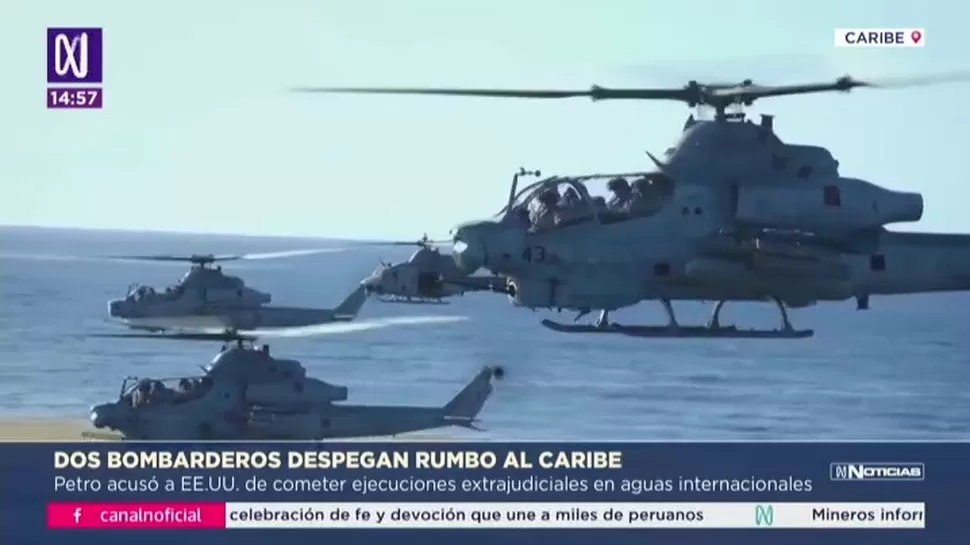 Como parte de la maniobra, dos bombarderos de la Fuerza Aérea de Estados Unidos despegaron desde Florida rumbo al Caribe. Estuvieron acompañados por tres aviones cisterna KC-135, lo que indica un despliegue de largo alcance. La acción forma parte de una ofensiva coordinada por el Pentágono, la CIA y la inteligencia nacional contra redes criminales venezolanas.
