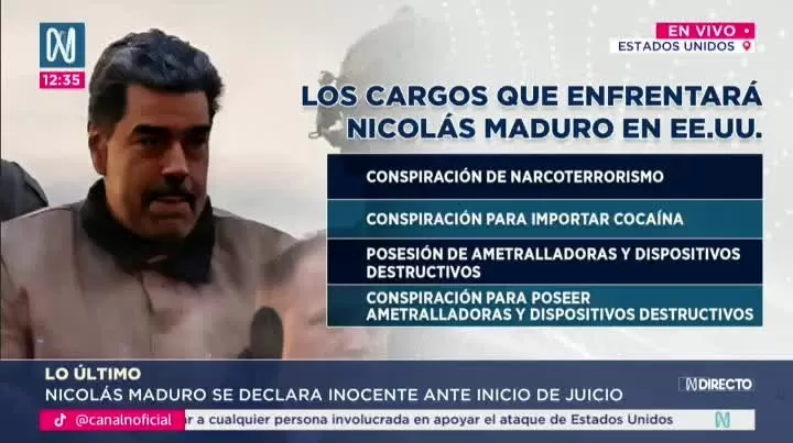 Nicolás Maduro fue presentado ante el juez federal Alvin Hellerstein, en una audiencia desarrollada a puerta cerrada en la Corte de Manhattan. En esta comparecencia, el exmandatario se declaró no culpable de todos los cargos formulados en su contra, y manifestó que no buscará acogerse a una confesión para reducir su eventual sentencia.