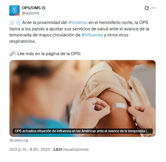 La Organización Panamericana de la Salud también ha alertado sobre la situación en el hemisferio norte, señalando que el subtipo A(H3N2), incluido su subclado K, circula en Europa y América del Norte.