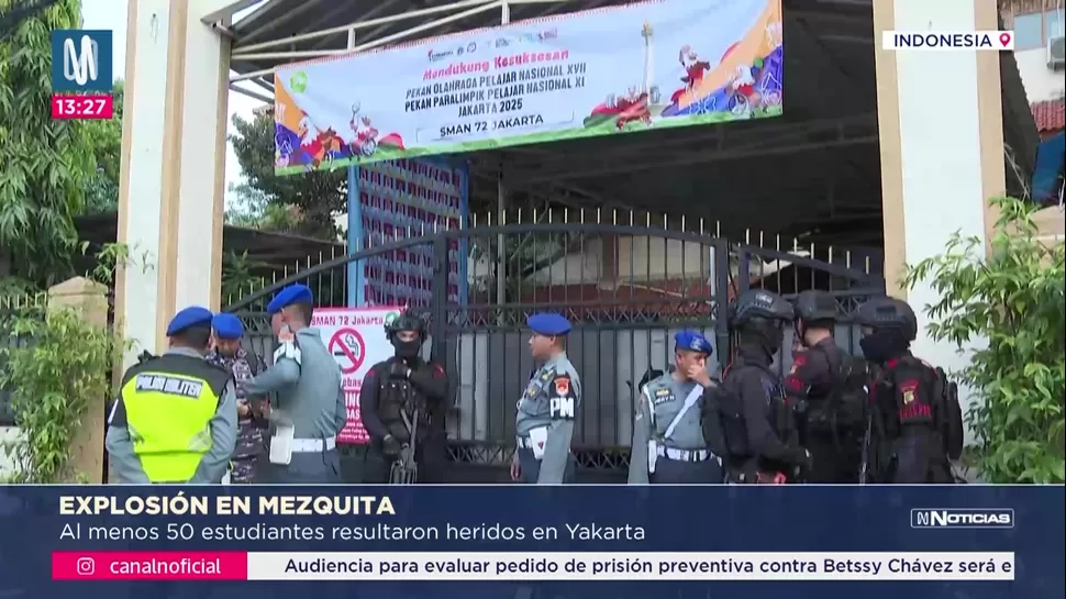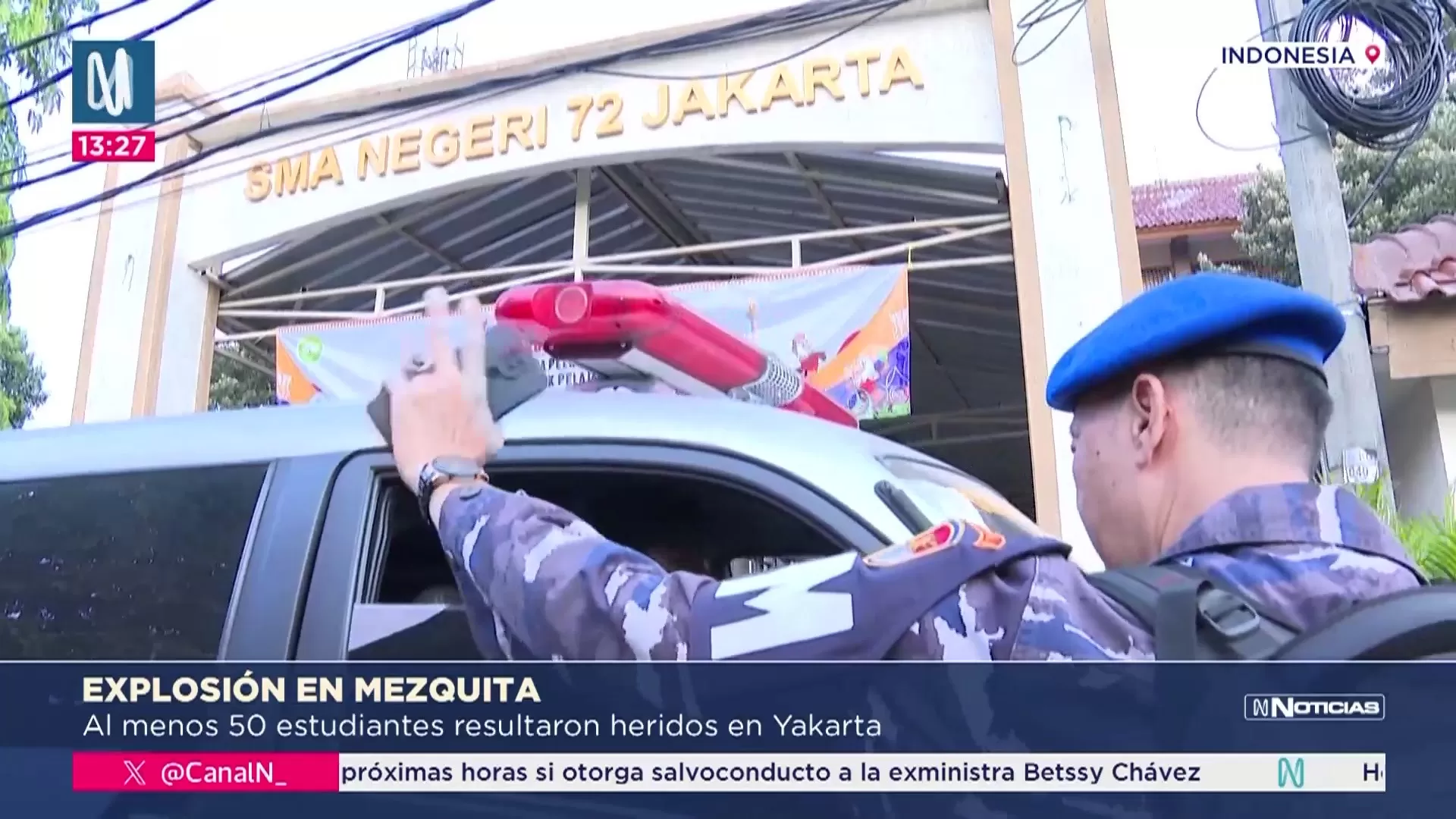Una explosión registrada en una mezquita dentro de un colegio en Yakarta dejó 54 personas heridas, la mayoría estudiantes. El estallido ocurrió durante la oración del viernes, causando caos y evacuaciones. El principal sospechoso es un estudiante de 17 años que también resultó herido. Las autoridades no han confirmado si se trató de un atentado, pero hallaron elementos sospechosos en la escena. Equipos antibombas y fuerzas de seguridad fueron desplegados. La comunidad escolar permanece en estado de alerta. Las investigaciones continúan, mientras se revisan cámaras y testimonios para determinar la causa exacta de la explosión en Yakarta.