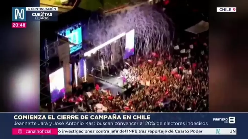 Los principales candidatos a la presidencia de Chile, Jeannette Jara y José Antonio Kast, realizaron el martes sus actos de cierre de campaña en la ciudad de Santiago, de cara a las elecciones del próximo 16 de noviembre. Ambos pusieron como eje el combate a la delincuencia y la migración irregular, en un contexto de creciente preocupación ciudadana por la seguridad.
