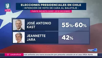 José Antonio Kast es el presidente electo de Chile tras obtener el 58,30 % de los votos en el balotaje presidencial, con el 95,18 % del escrutinio oficial. La candidata oficialista Jeannette Jara obtuvo el 41,70 %.