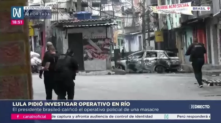 El presidente de Brasil, Luiz Inácio Lula da Silva, calificó como una matanza el operativo policial en Río de Janeiro que dejó 121 muertos, incluyendo 117 presuntos delincuentes y 4 policías. Lula pidió una investigación formal y señaló que solo se conoce la versión del gobierno estatal. La ONU y organizaciones de derechos humanos también exigieron esclarecer los hechos. El gobernador Claudio Castro defendió la operación como exitosa. Durante el operativo se incautaron armas de guerra de diversos países. A pesar de las críticas, la mayoría de la población apoya la intervención. Lula promulgó una ley para reforzar el combate al crimen organizado.