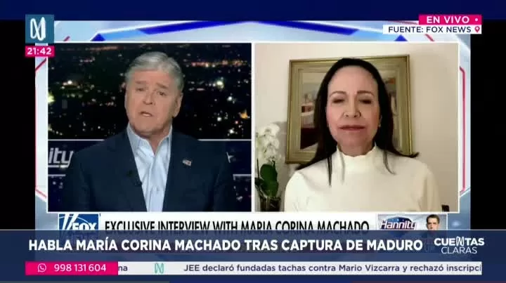 La lideresa opositora venezolana María Corina Machado ofreció su primera entrevista pública tras la captura de Nicolás Maduro en Caracas. En conversación con el periodista Sean Hannity en el canal estadounidense Fox News, la también ganadora del Premio Nobel de la Paz elogió la intervención militar que permitió la detención del exmandatario y destacó el rol del expresidente Donald Trump en ese proceso.