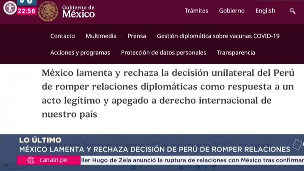 El Gobierno de México rechazó la decisión del Ministerio de Relaciones Exteriores del Perú de romper relaciones diplomáticas, luego de que se otorgara asilo a la expremier Betssy Chávez. A través de un comunicado, la Secretaría de Relaciones Exteriores mexicana sostuvo que el acto fue legítimo y conforme al derecho internacional.