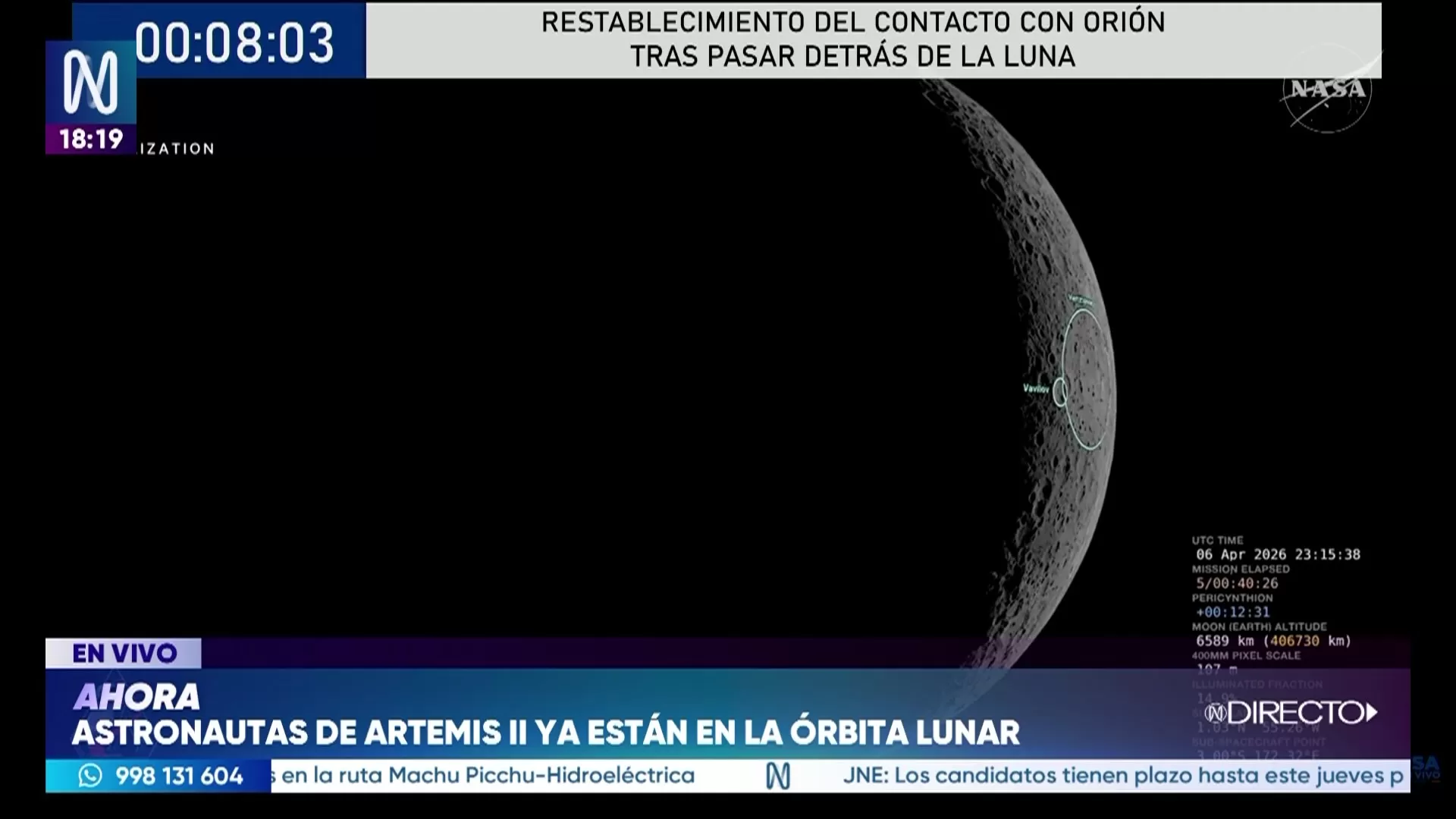 Misión Artemis II logra histórico sobrevuelo cercano lunar