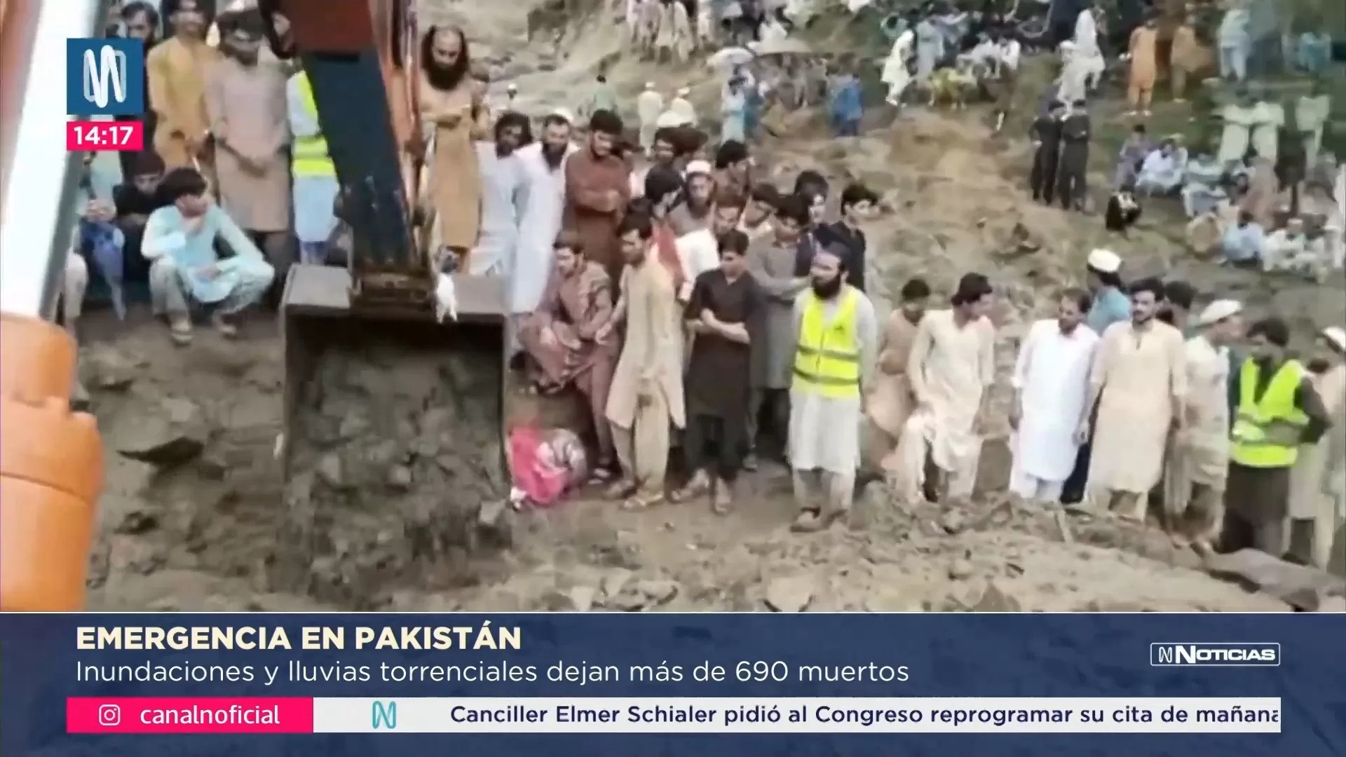 Pakistán declaró emergencia nacional tras intensas lluvias que ya dejaron más de 695 muertos. La región noroeste es la más afectada, con pueblos arrasados y decenas de desaparecidos. Equipos de rescate buscan sobrevivientes bajo los escombros. Las autoridades advierten que las precipitaciones continuarán hasta septiembre. La situación revive el recuerdo de las inundaciones de 2022, que causaron más de 1,700 muertes en el país.