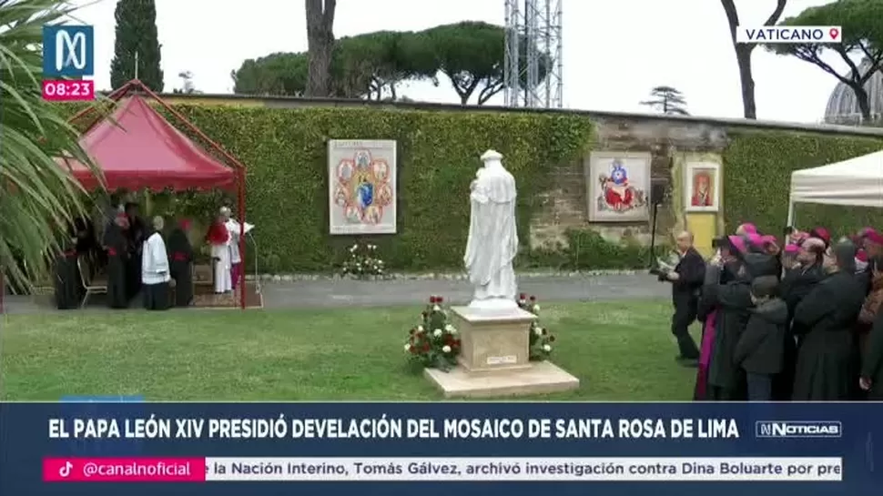 El papa León XIV presidió este jueves una ceremonia en los jardines del Vaticano en la que se realizó la bendición de la imagen de Santa Rosa de Lima.