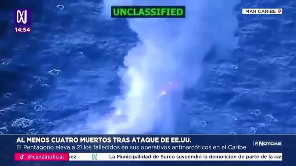 Con este hecho, las operaciones antinarcóticos desplegadas por Washington en la zona suman ya 21 fallecidos en lo que va de sus recientes acciones contra redes de tráfico de drogas hacia territorio estadounidense.