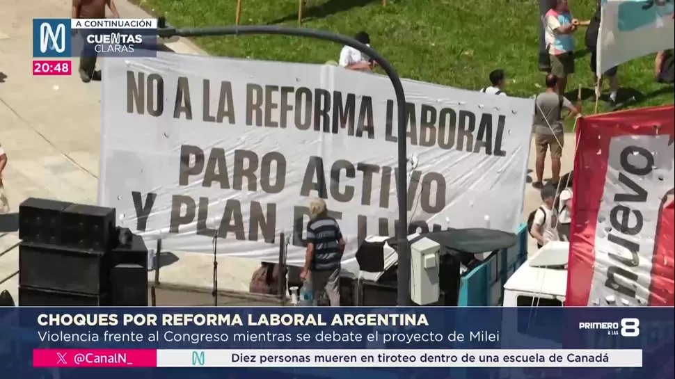 La tensión política se trasladó a las calles de Argentina mientras el Senado debatía la reforma laboral. En los exteriores del Congreso, una protesta derivó en enfrentamientos entre manifestantes y fuerzas de seguridad.