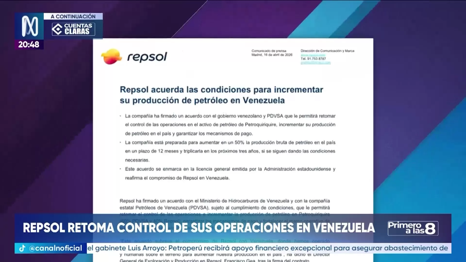 La energética española Repsol recuperó el control operativo de sus activos petroleros en Venezuela tras un acuerdo con el Gobierno y PDVSA. La empresa planea aumentar la producción en un 50 % en un año y triplicarla en tres años. El pacto incluye un mecanismo de pago garantizado para evitar futuros impagos, aunque no asegura el reembolso de deudas previas por 4550 millones de dólares. La operación es posible gracias a las nuevas licencias otorgadas por EE. UU. tras la captura de Nicolás Maduro, permitiendo a Repsol reactivar su participación del 40 % en el yacimiento Petroquiriquire.