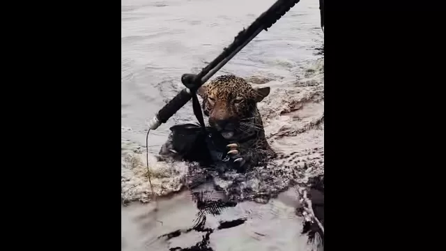 El felino herido nadaba con dificultad en las aguas del Río Negro, al parecer, en dirección hacia la playa Ponta Negra, el pasado 2 de octubre, cuando recibió ayuda de los rescatistas con un flotador improvisado. De acuerdo con las imágenes, el animal se aferró hasta que llegaron a la orilla.