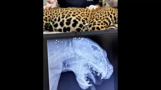 Eso no fue todo, al jaguar le faltaban varias piezas dentales, por lo que fue internado en una clínica veterinaria de Manaos, donde se mantiene “bastante estresado”, pero estable, informó el medio brasileño Globo.