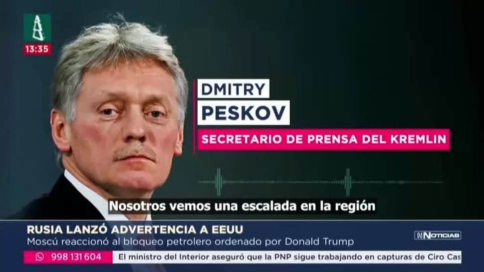 La medida estadounidense ha generado una nueva escalada de tensión en la región. Desde Moscú, el vocero del Kremlin, Dmitry Peskov, exhortó al gobierno estadounidense a actuar con moderación y evitar decisiones que puedan desestabilizar el hemisferio.