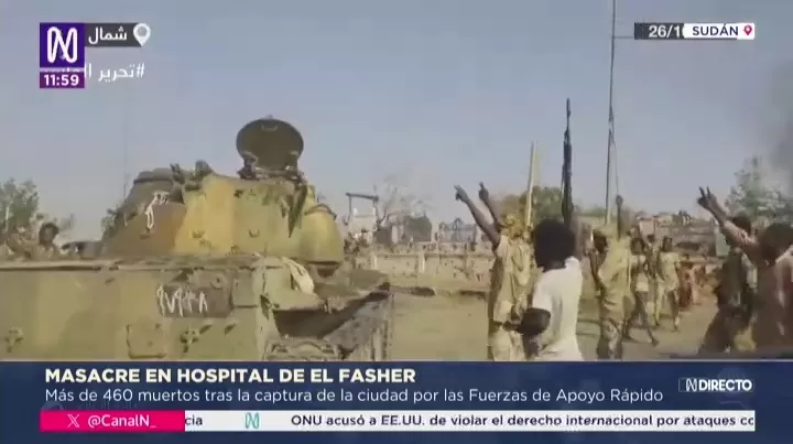 La Organización Mundial de la Salud confirmó 460 muertos tras un ataque a un hospital en El Fasher, luego de que fuerzas paramilitares tomaran la ciudad en medio de la guerra civil.