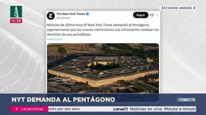 El diario The New York Times presentó una demanda judicial contra el Pentágono, argumentando que las nuevas restricciones impuestas por el Departamento de Defensa de Estados Unidos vulneran el derecho a la información. Según el medio, estas medidas representan una amenaza directa a la libertad de prensa garantizada por la Primera Enmienda de la Constitución.
