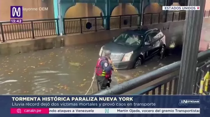 Una tormenta en Nueva York dejó dos muertos, calles anegadas, cortes de energía y caos en el transporte. Las lluvias, las más intensas desde 1917, colapsaron el drenaje urbano e inundaron estaciones del metro. Las víctimas fueron un hombre de 43 años en Washington Heights y otro de 39 años en Brooklyn. LaGuardia suspendió vuelos y reportó retrasos de hasta cinco horas. Más de 500 viviendas quedaron sin energía. Las autoridades emitieron alertas por nuevas lluvias y recomendaron evitar zonas bajas. Equipos de emergencia continúan los operativos de rescate, limpieza y restauración de servicios en los cinco distritos de la ciudad.