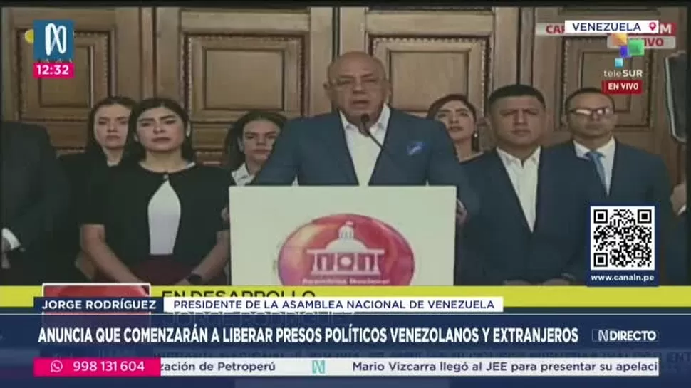 El presidente de la Asamblea Nacional de Venezuela, Jorge Rodríguez, anunció que el gobierno y las instituciones del Estado han decidido liberar un número importante de personas, tanto venezolanas como extranjeras