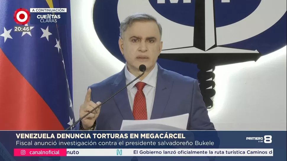 El fiscal general venezolano, Tarek William Saab anunció investigación penal contra el presidente Nayib Bukele y altos funcionarios de su gobierno, acusándolos de cometer crímenes de lesa humanidad