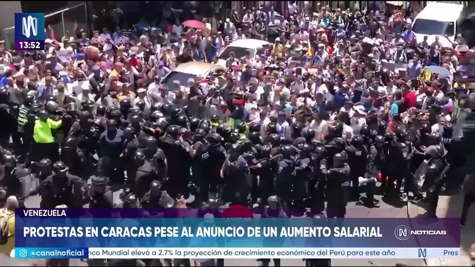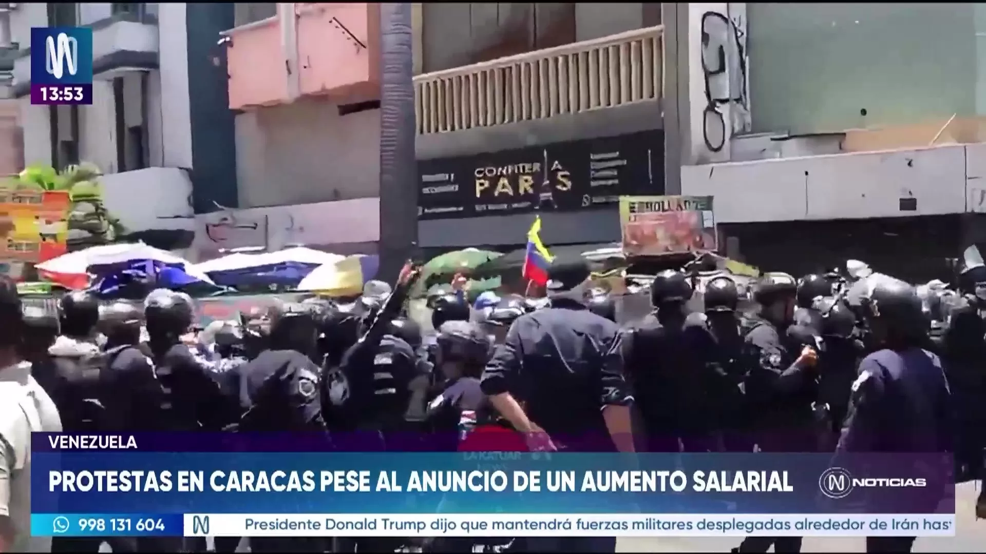 Las protestas en Caracas se registraron pese al anuncio de un aumento salarial realizado por el Gobierno de Venezuela. Miles de trabajadores salieron a las calles para exigir mejores ingresos, en medio de un contexto económico marcado por alta inflación y bajos salarios. La policía dispersó la movilización con gases lacrimógenos cuando los manifestantes intentaban avanzar hacia el Palacio de Miraflores. El salario mínimo se mantiene en 130 bolívares, equivalente a 0.27 dólares, mientras el Ejecutivo anunció un incremento que regirá desde el 1 de mayo sin precisar detalles.