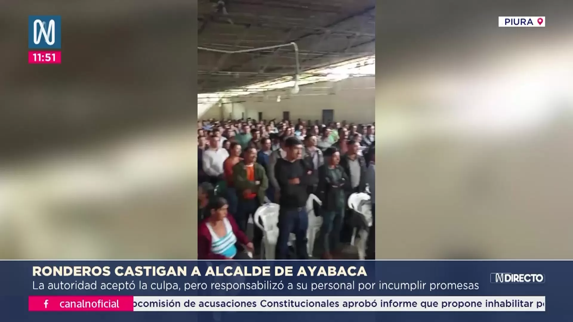 El alcalde de Ayabaca, Darwin Quinde Rivera, fue castigado con doce latigazos por rondas campesinas del caserío Hualcuy, en Piura. La sanción se aplicó tras una audiencia comunal que lo acusó de incumplir compromisos asumidos con la población. Durante el acto, el alcalde intentó detener el castigo, sin éxito, y posteriormente pidió disculpas. Alegó que las fallas fueron responsabilidad de trabajadores municipales. El video del incidente fue difundido y generó debate. La Constitución reconoce funciones jurisdiccionales a las rondas, siempre que respeten los derechos fundamentales. Hasta ahora, no se ha reportado un pronunciamiento oficial del Gobierno Regional.