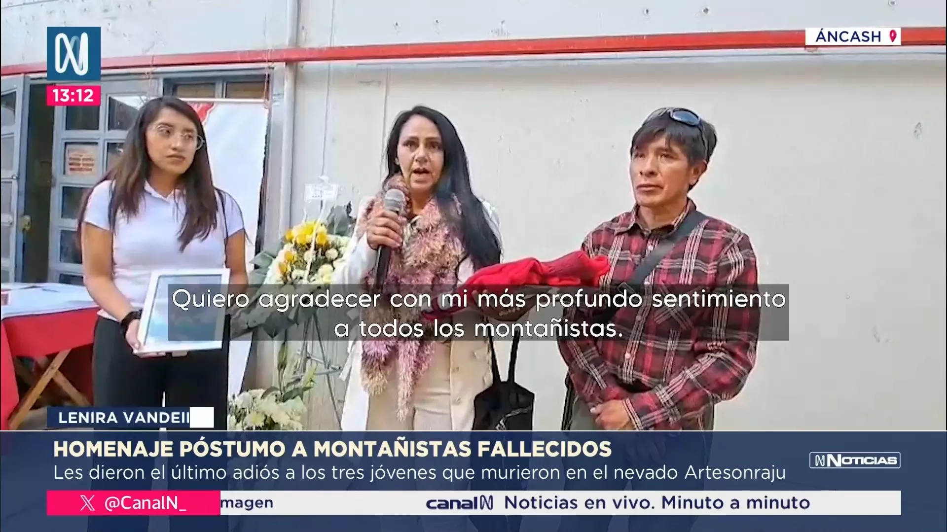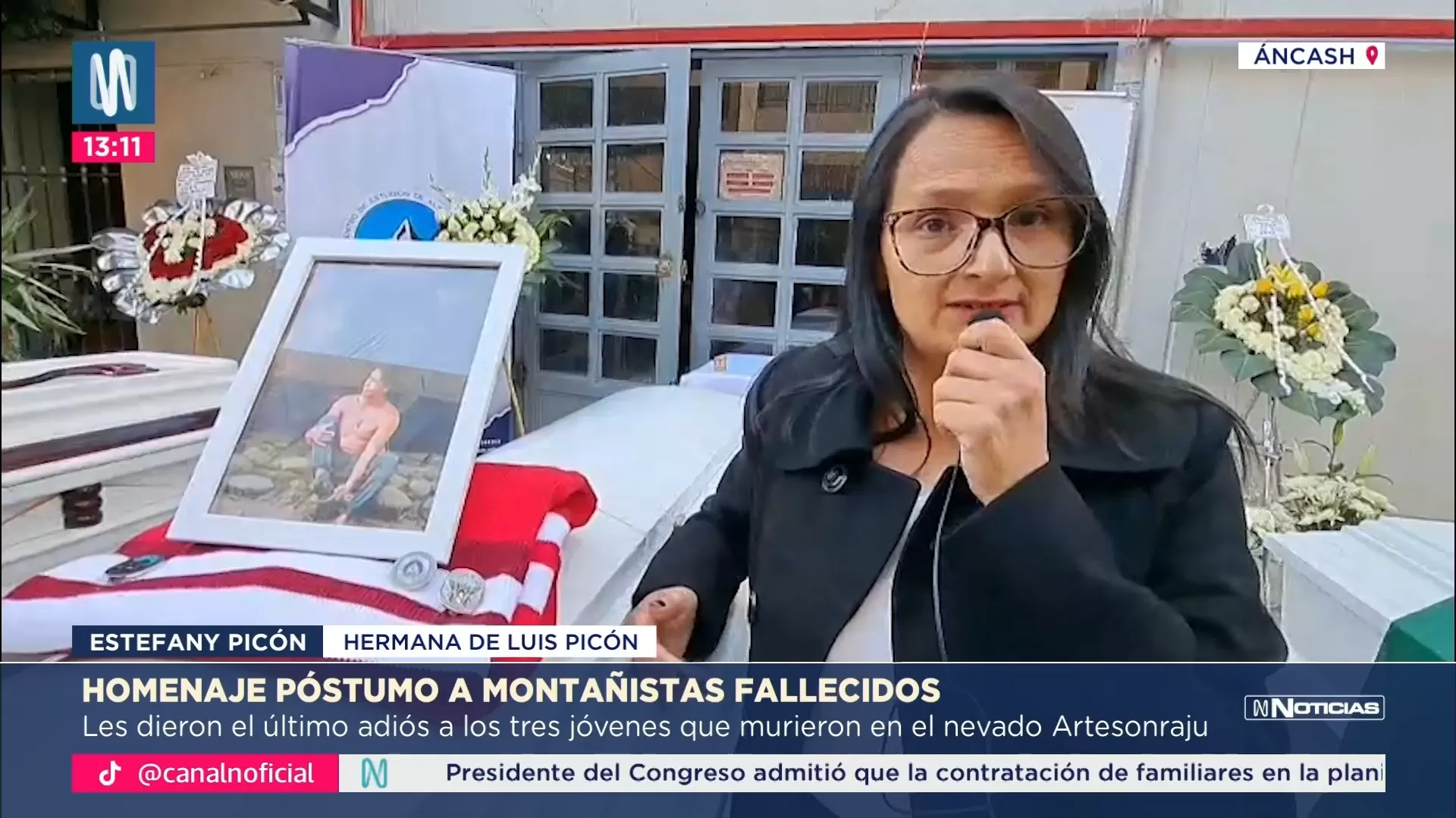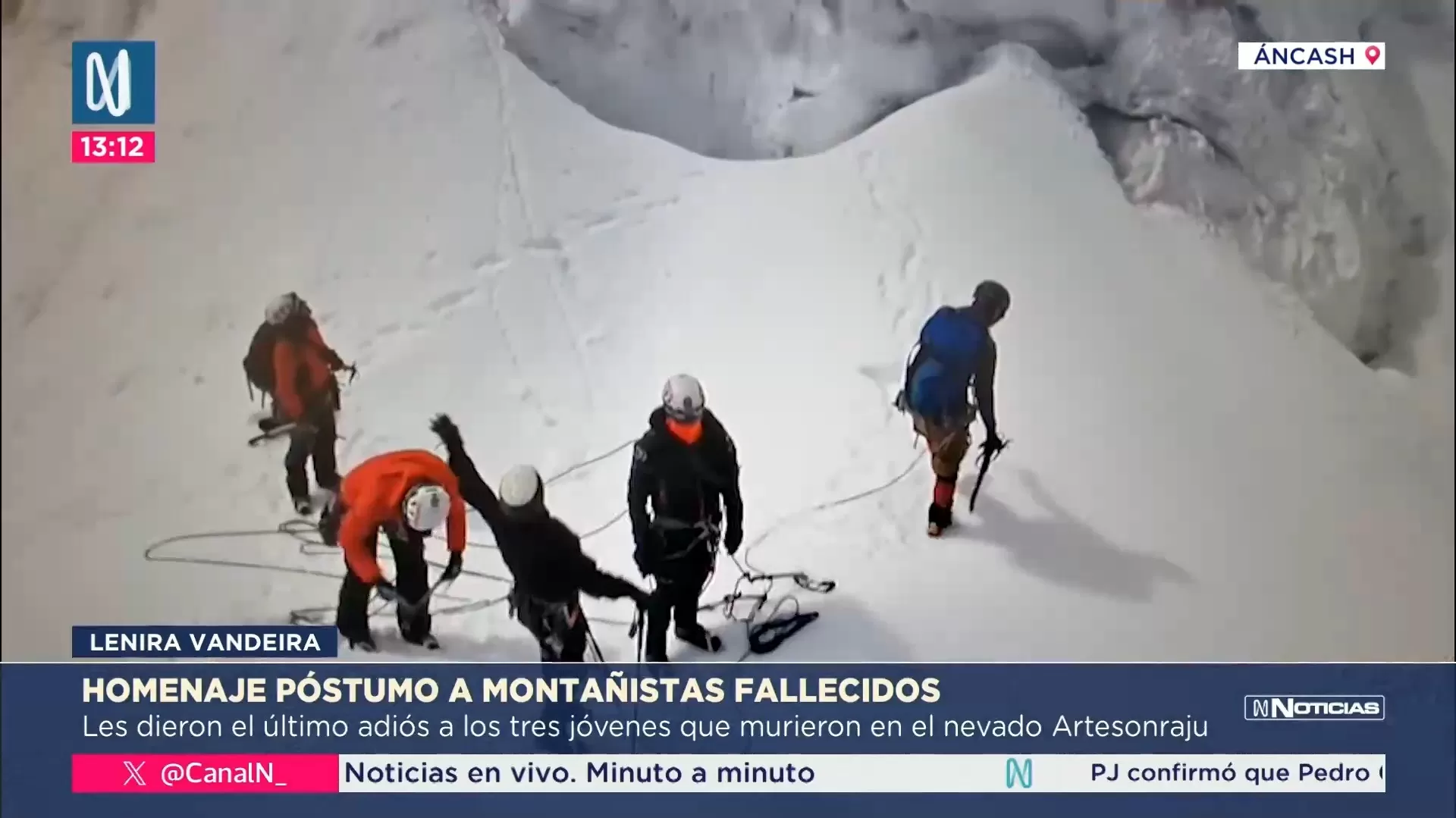 Los tres jóvenes que murieron tras una avalancha en el nevado Artesonraju, en la región Áncash, recibieron un homenaje póstumo en el local de la Asociación de Guías de Montaña del Perú, en Huaraz. Se trató de Jesús Picón, Efraín Pretel y Edson Vandeira, estudiantes del último ciclo del Centro de Estudios de Alta Montaña.