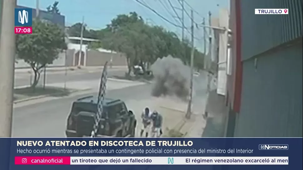 Una fuerte explosión se registró este viernes en la prolongación Fátima, en la ciudad de Trujillo, como resultado de un atentado contra una discoteca. El ataque afectó la fachada del local y una vivienda vecina. El estallido se produjo pasadas las 11 de la mañana, luego de que un hombre llegara en moto, arrojara un paquete en la vereda y huyera.