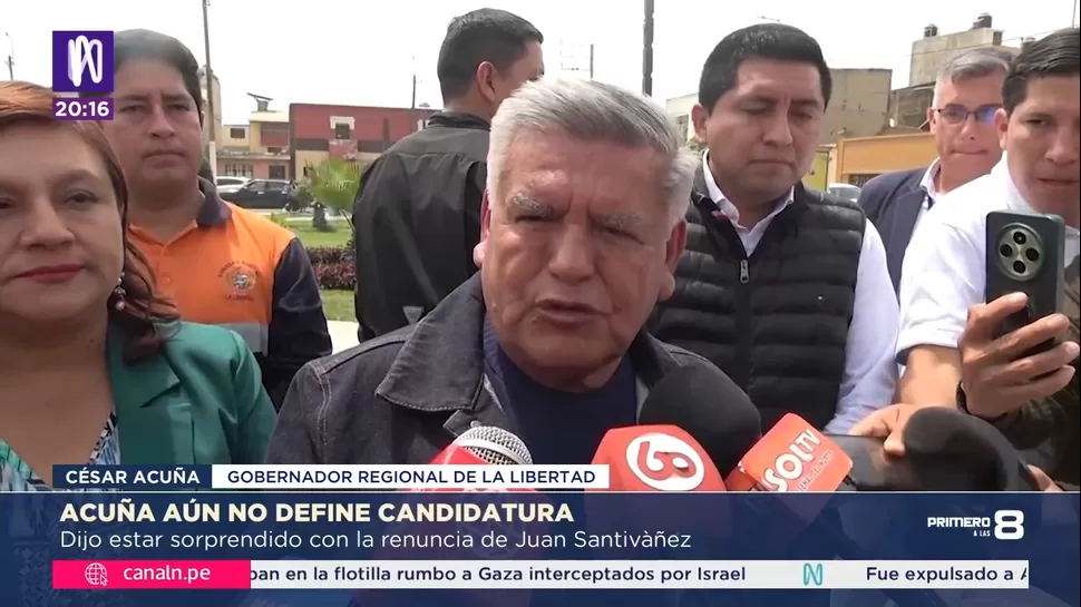 El gobernador regional de La Libertad, César Acuña, declaró que mantiene en suspenso su decisión de postular a la presidencia de la República en las elecciones de 2026. Pese a que algunos congresistas de su partido, Alianza para el Progreso (APP), ya lo han confirmado como candidato, señaló que aún tiene plazo para evaluarlo.
