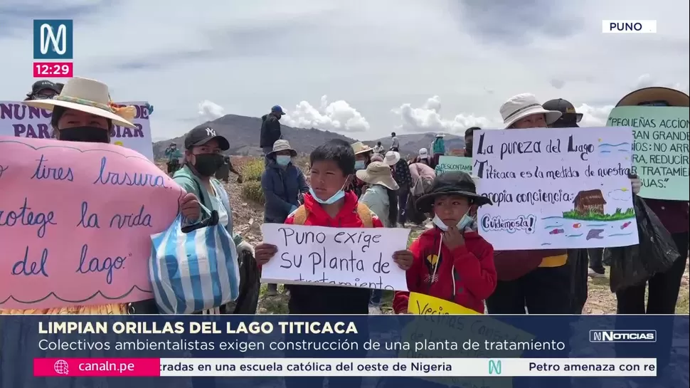 En el altiplano de Puno, colectivos ambientalistas llevaron a cabo una jornada de limpieza en las orillas del lago Titicaca, denunciando el ingreso directo de aguas residuales sin tratamiento y exigiendo al Gobierno central, regional y local la construcción de una planta de tratamiento.