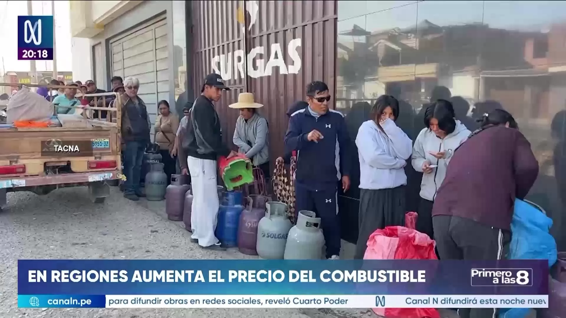 La crisis del gas continúa afectando a varias regiones del país con escasez de combustible, aumento de precios y largas colas en estaciones de servicio. En Arequipa, conductores esperan hasta cinco horas para abastecer sus vehículos y algunas estaciones se quedan sin combustible rápidamente. En Tacna, el precio del balón de gas doméstico subió de 50 a 60 soles, mientras que en Moquegua la gasolina pasó de 14.80 a 19 soles por galón. Además, en la planta de Pisco conductores de cisternas esperan hasta seis días para cargar GLP, lo que retrasa el abastecimiento hacia distintas ciudades.