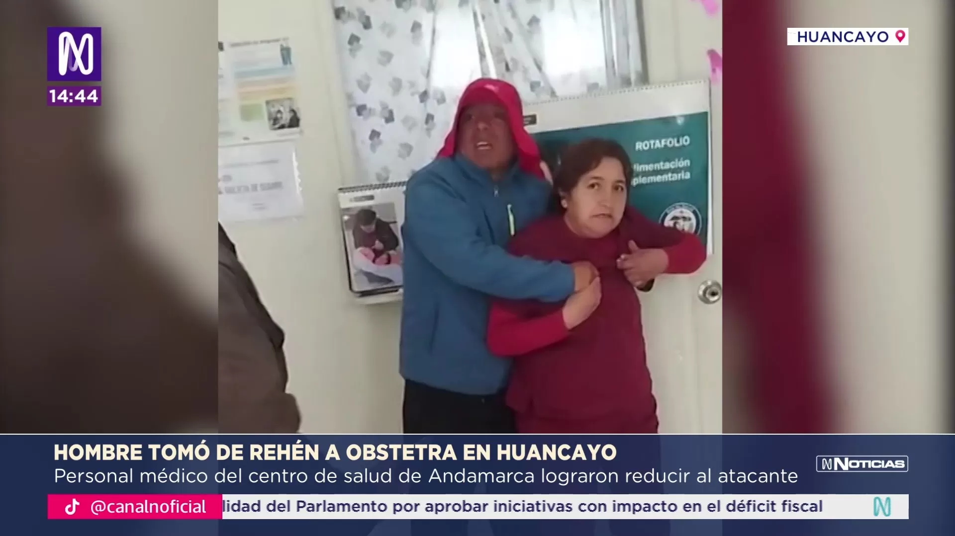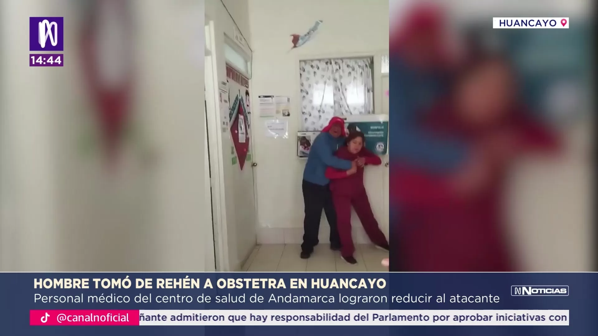 Un hombre irrumpió en el centro de salud de Andamarca, en Concepción, Junín, y tomó de rehén a una obstetra con un trozo de vidrio. La amenazó de muerte y exigió un celular. Tras minutos de tensión, fue reducido por el personal sin que se registraran heridos. Luego fue entregado a la Policía y trasladado a la comisaría de Santo Domingo de Acobamba. La Red de Salud Valle del Mantaro emitió un comunicado rechazando la violencia y pidió garantías para el personal en zonas alejadas. Las diligencias continúan para esclarecer los motivos del agresor y aplicar la ley.