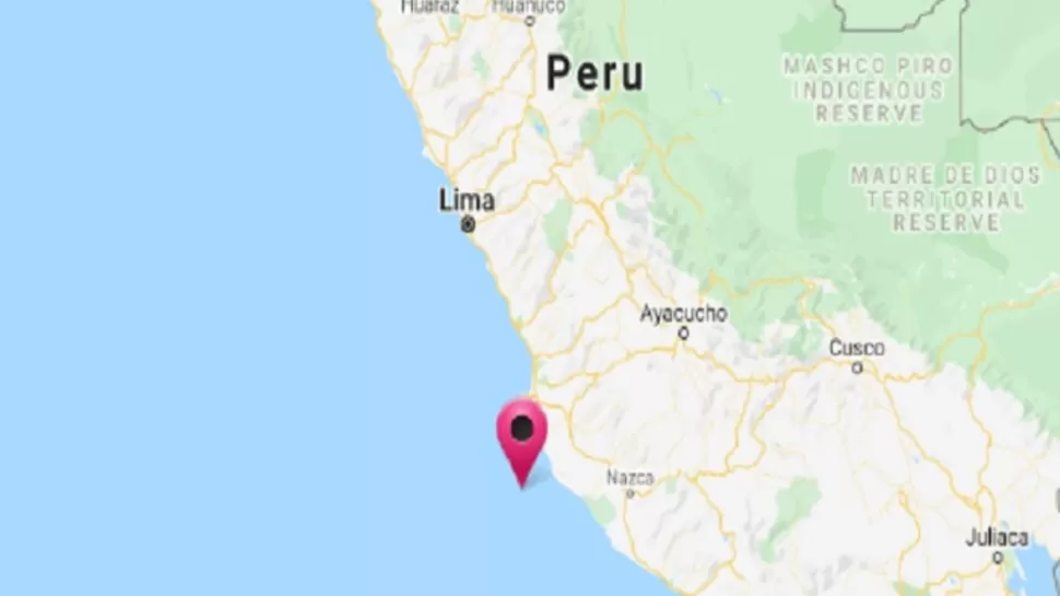 El movimiento telúrico ocurrió a las 10:41 a. m. y tuvo una profundidad de 38 kilómetros, con una latitud de -14.87 y una longitud de -76.34.