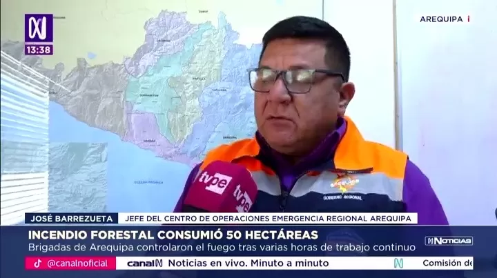 El jefe del COER Arequipa, José Barrezueta, informó que el incendio forestal afectó aproximadamente 50 hectáreas de cobertura vegetal, aunque precisó que el número exacto será confirmado por el Servicio Nacional de Áreas Naturales Protegidas (Sernanp).
