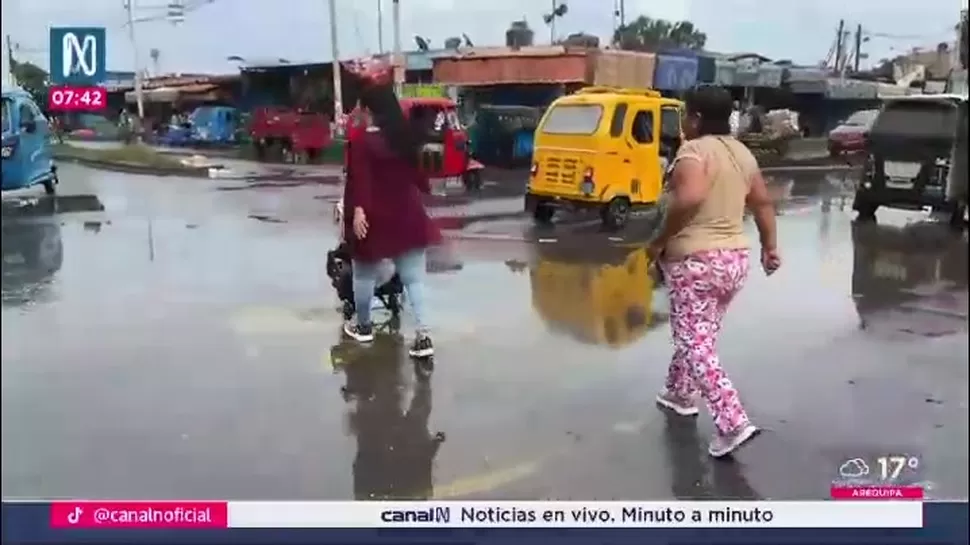 El reporte fue realizado desde el centro de la ciudad para Canal N. Las precipitaciones sorprendieron a la población, ya que no es habitual que llueva en esta zona del sur del país. En distintos puntos del centro de Pisco se observó acumulación de agua, especialmente entre los mercados 1 y 2.