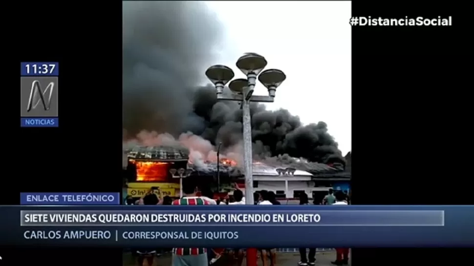 Un incendio destruyó siete inmuebles en la localidad de Caballococha, ubicada en la provincia de Mariscal Ramón Castilla, Loreto, en la frontera entre Perú y Colombia.