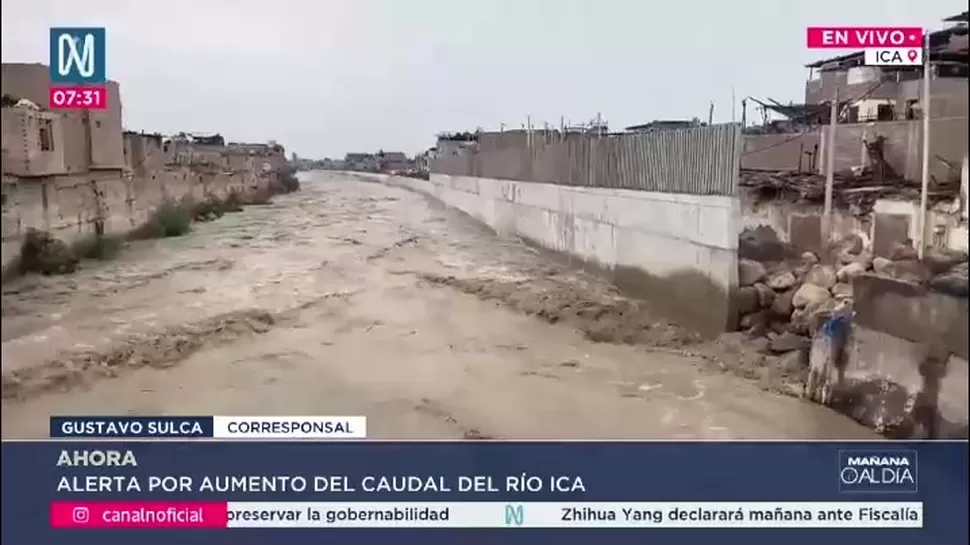 Según el medidor del municipio de Ica, a la 1:00 a. m. el río Ica alcanzó un nivel máximo de 250 metros cúbicos. A esta hora de la mañana, el caudal registra 150 metros cúbicos.