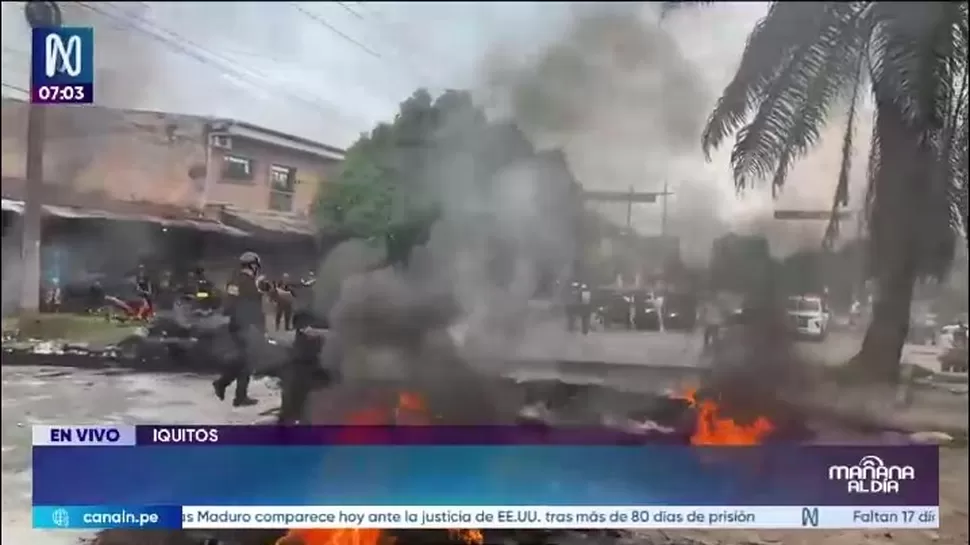 Desde las 00:00 horas se registró el bloqueo de diversas vías en la ciudad de Iquitos. La medida incluyó la quema de llantas y la instalación de piquetes en distintos puntos, afectando principalmente la carretera Iquitos–Nauta, que permaneció restringida durante varias horas.
