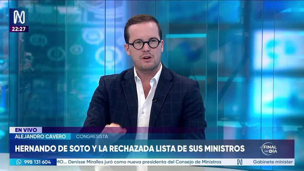 Al Final del DíaAlejandro Cavero: El Gobierno vio que la apuesta era peligrosaAl Final del Día / Canal NAl Final del Día, de lunes a viernes a partir de las 10:00 p.m. por Canal N TagsAl Final del DíaRelacionadasDanilo Guevara: Hay varias firmas que operan en el Vraem encargadas de recolectar, procesar y exportar la drogaJulio Espinoza: El presidente Balcázar ya había sido citado a esta audiencia desde agostoJuanita Pastor: Daniel Urresti es inocente, siempre ha dicho la verdad Oliver Stark: Estoy muy pesimista con lo que va pasar en PetroperúSonia Goldenberg: Urrestri no ha sido exonerado, sigue siendo el responsableCarlos Cabanillas: Creo que Cerrón aprendió de la lección pasada, no anticipar la jugada