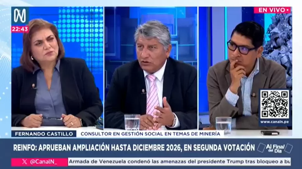 Al Final del DíaEl apoyo de los partidos políticos a los mineros informalesAl Final del Día / Canal NAl Final del Día, de lunes a viernes a partir de las 10:00 p.m. por Canal N TagsAl Final del DíaRelacionadasJuan Paredes Castro: La exclusión de Acción Popular evidencia la necesidad de una reorganización profundaCarlos Pareja: El mensaje de Trump generó gran expectativa por anuncios sobre VenezuelaLuis Nunes: Al régimen venezolano se le está ahogando con inteligencia estratégicaAbel Salinas: Es una buena práctica usar mascarilla si no hay síntomasAlejandro Rospigliosi: Las elecciones por delegados son un engañoJorge del Castillo: Respeto la elección de Valderrama y la respaldo