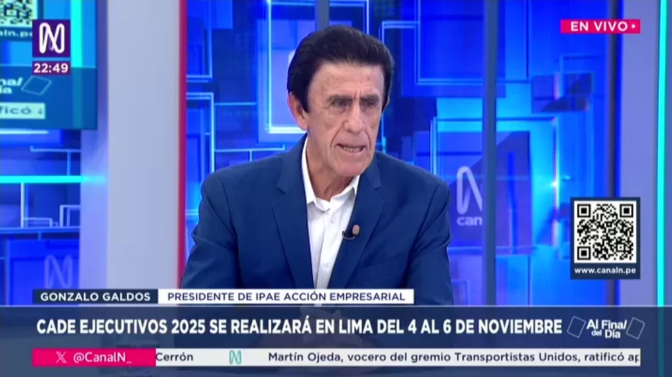 Al Final del DíaGonzalo Galdos: Necesitamos líderes con vocación de servicioAl Final del Día / Canal NAl Final del Día, de lunes a viernes a partir de las 10:00 p.m. por Canal N Tagsal final del díaRelacionadasElio Riera: Tengo el número cuatro para diputado por APPJulio Chávez: No postularé al Congreso, solo a la presidenciaGilbert Violeta: PPK nos convenció para postular al CongresoEnrique Valderrama: Estoy como precandidato a la Cámara de DiputadosFernán Altuve: Combina me dijo que quería ser alcalde de San IsidroÓscar Valdez: Los alcaldes deberían ser responsable de la seguridad
