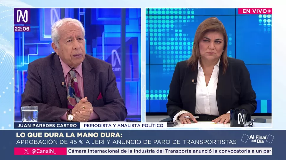 Al Final del DíaJuan Paredes Castro: Hay una ansiedad pública por resultadosAl Final del Día / Canal NAl Final del Día, de lunes a viernes a partir de las 10:00 p.m. por Canal N Tagsal final del díaRelacionadasRicardo Pinedo: En 2006, Alan García rechazó evacuar Palacio por un presunto atentado planeado por BermejoWilson Soto: No pueden humillar a un trabajador del CongresoJuan de la Puente: No tengo optimismo de que las cosas cambien en el CongresoDanilo Guevara: El electorado tiene que tener mucho más cuidado en saber por quién votaIván Paredes: Más candidatos podrían alejarse del CADE por cálculo políticoAlejandro Muñante: La sentencia a Bermejo por terrorismo evidencia fallas en filtros electorales