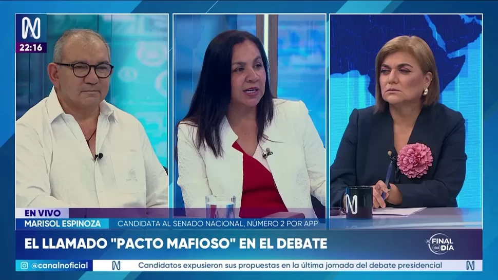 Al Final del DíaEl llamado "pacto mafioso" en el debateAl Final del Día / Canal NAl Final del Día, de lunes a viernes a partir de las 10:00 p.m. por Canal N TagsAl Final del DíaRelacionadasPoder Judicial deberá emitir nuevo fallo en caso de Martín VizcarraRafael López Aliaga rechazó tregua propuesta por Keiko FujimoriFernando Tincopa: Fernando Olivera dedicó solo el 14% de su tiempo a dar propuestasBalance de la primera ronda del debate presidencialPier Figari: El sistema de justicia tiene una lógica perversaDanilo Guevara: Esta rotación de directores de inteligencia genera graves alteraciones