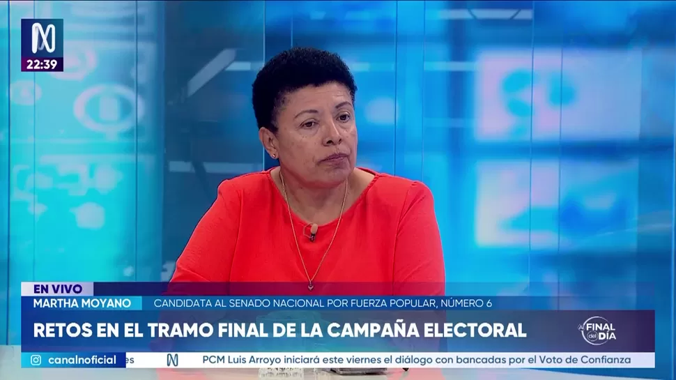 Al Final del DíaMartha Moyano: El electorado toma decisiones en la colaAl Final del Día / Canal NAl Final del Día, de lunes a viernes a partir de las 10:00 p.m. por Canal N TagsAl Final del DíaRelacionadasAlejandro Cavero: La campaña ha sido austera y con mucha convicciónDaniel Barragán: No tenemos ninguna relación, hasta el momento, con Vladimir CerrónRoberto Burneo: Todas las cédulas que se emiten en las mesas de sufragio se van a conservarFernando Rospigliosi: He dado una opinión en el ejercicio de mi funciónLos protagonistas en el último tramo de la campaña electoralSilvia Guevara: El voto preferencial es opcional