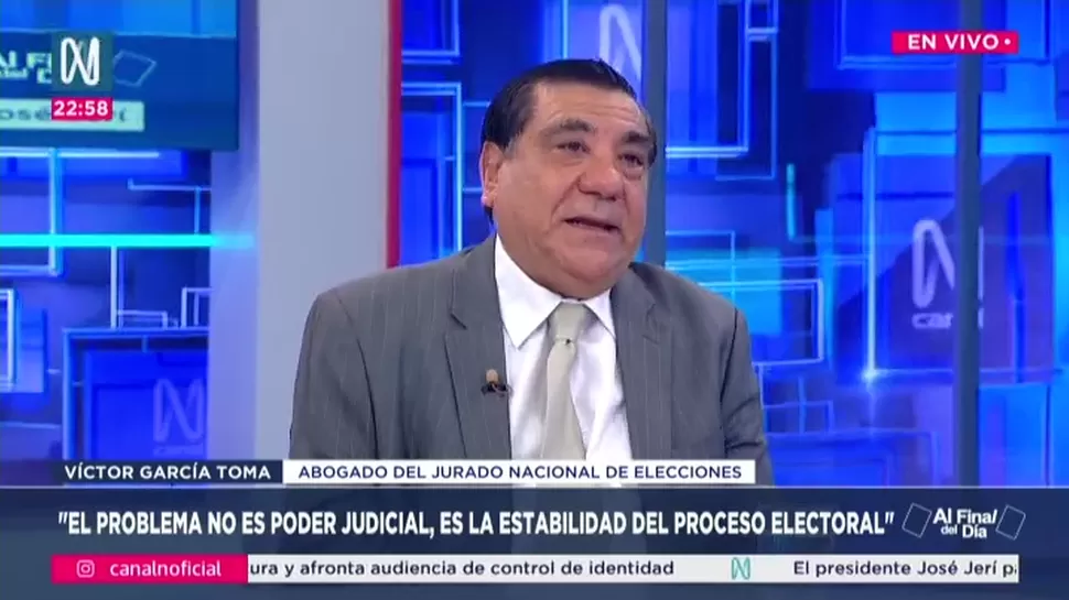 Al Final del DíaVíctor García Toma: "El problema no es el Poder Judicial, es la estabilidad del proceso electoral"Al Final del Día / Canal NAl Final del Día / Canal N Tagsal final del díaRelacionadasFlavio Cruz: "No sabíamos que Betssy Chávez trabajaba para partidos de derecha"Martha Chávez sobre Betssy Chávez: "Esta señora, mediante el asilo, está escapando de la justicia peruana" Javier González-Olaechea: "No es lícito conceder asilo a personas que al tiempo estén procesadas" César Nakazaki: "Betssy Chávez no es víctima de persecución política"Luis Flores: "El caso de César Combina corresponde a un tema de requisitos para inscripción de candidatura"Remigio Hernani: La PNP ya ha creado unidades espaciales contra robos o secuestros